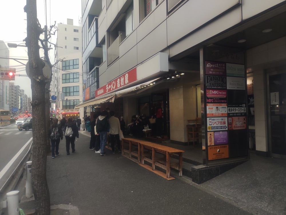 さすが家系総本山。先に食券を購入して並ぶシステムとなっており、店先で店員さんが声掛けを頻繁にしてくれます。