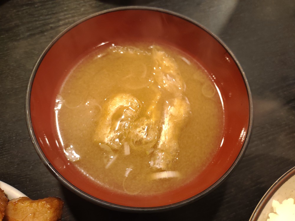 素朴な油揚げとネギの入った味噌汁も沁みますね〜。