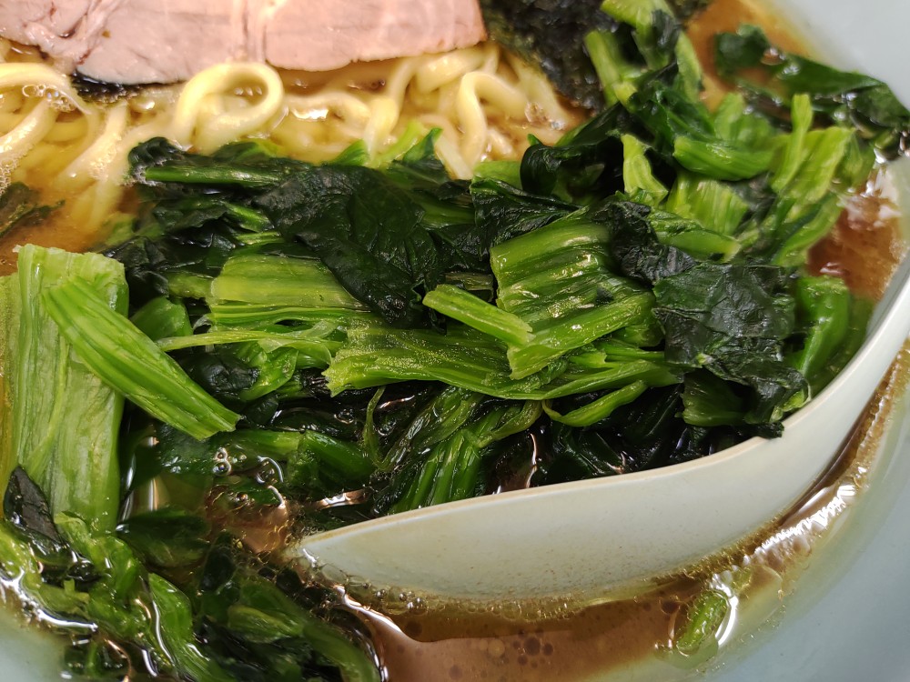 具材は少し残念で、茹でられたほうれん草はしっかり入っていますが鮮度がイマイチで、茎が多めでした。