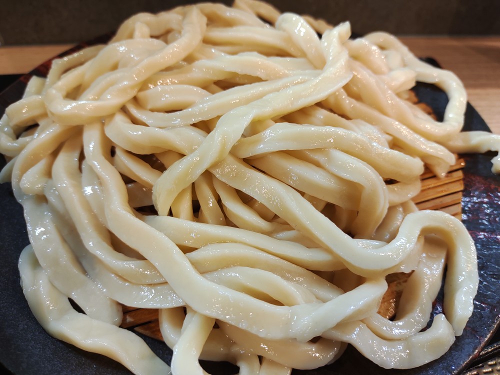 モッチリとした食感のあるコシの強いうどんで、噛み締めると小麦の風味と旨味を感じます。