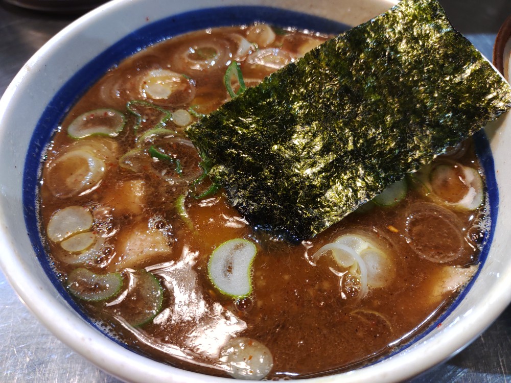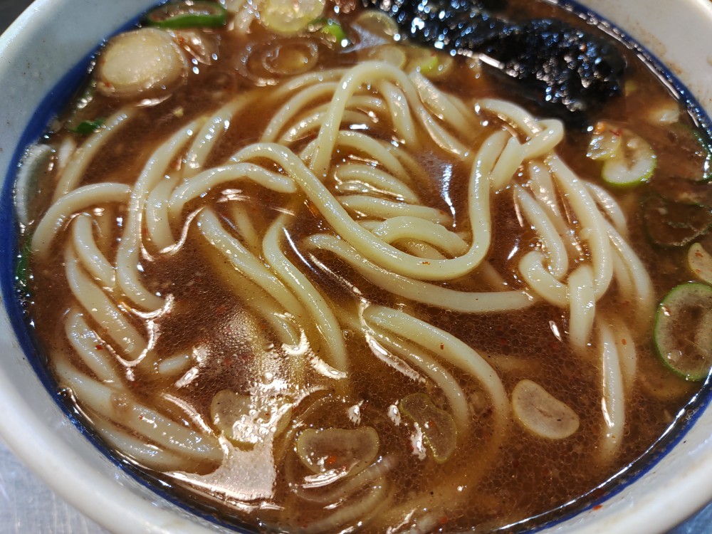 鰹節のような魚介の風味と酸味、甘みの後に遅れてやって来る唐辛子の辛味が滝野川大勝軒の大きな特徴でしょう。