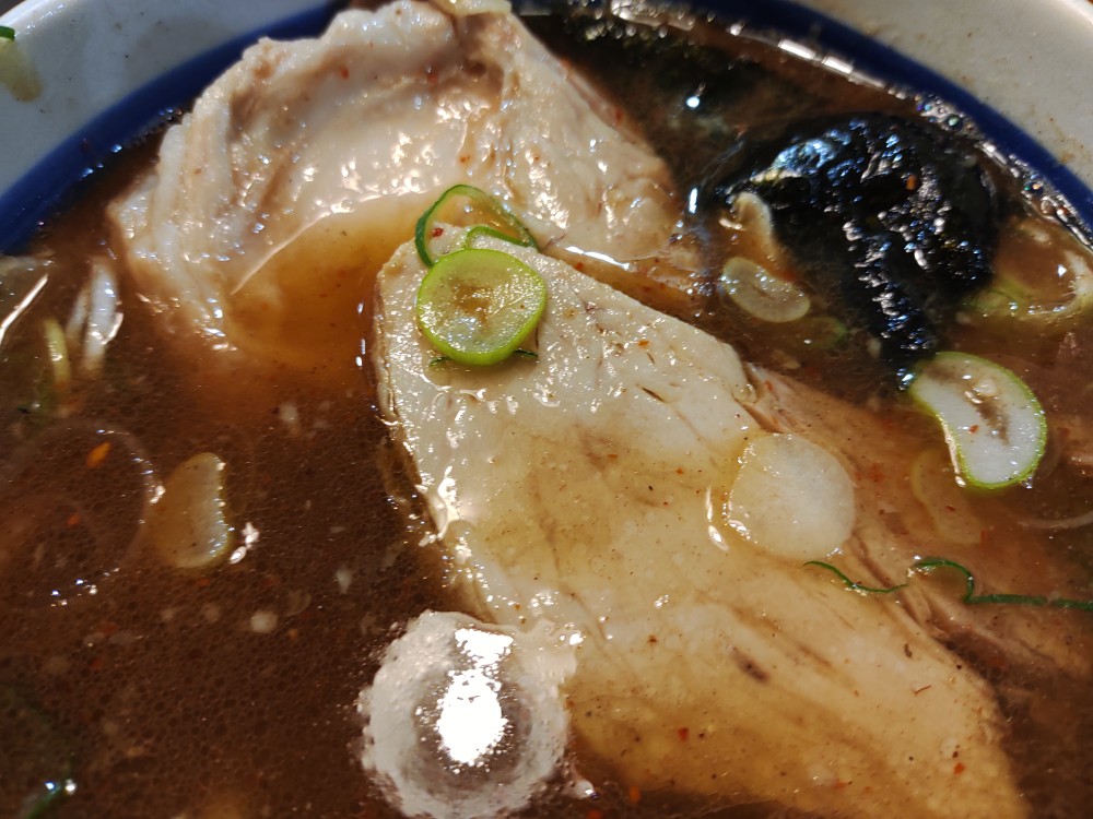チャーシューは赤身の部分が使われた噛み応えのあるもので、ノーマルでこの量が入っているのは嬉しいですね。