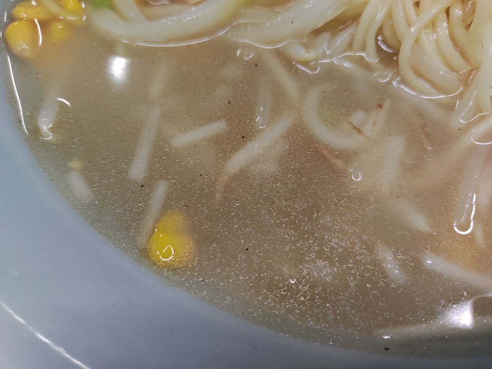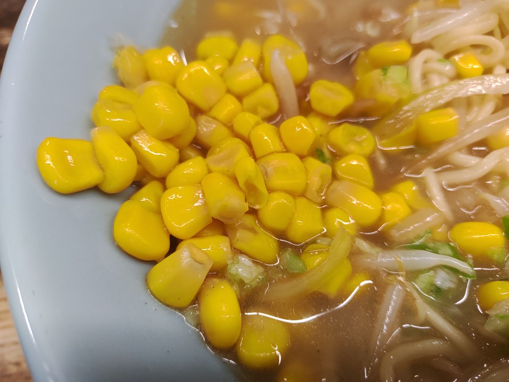 コーンが多めに乗っているのは嬉しいのですが、どうしても器の底に沈んでしまうので、穴空きスプーンがあると良いですかね。